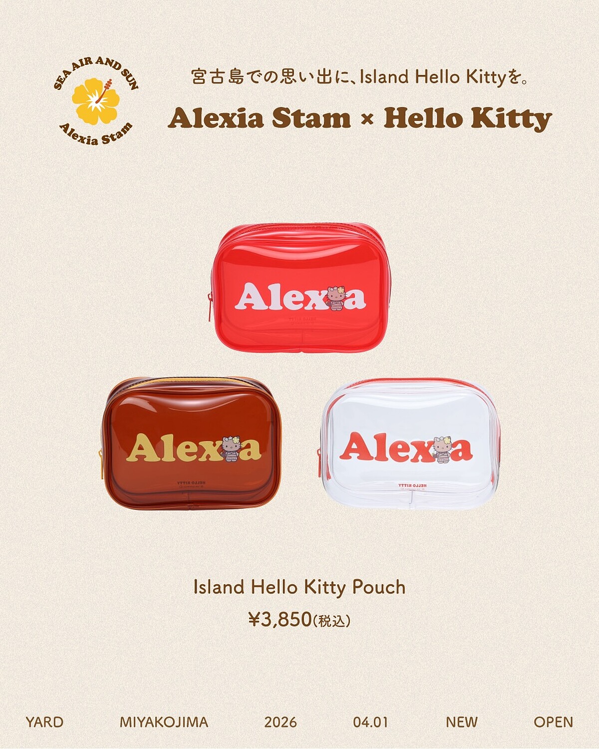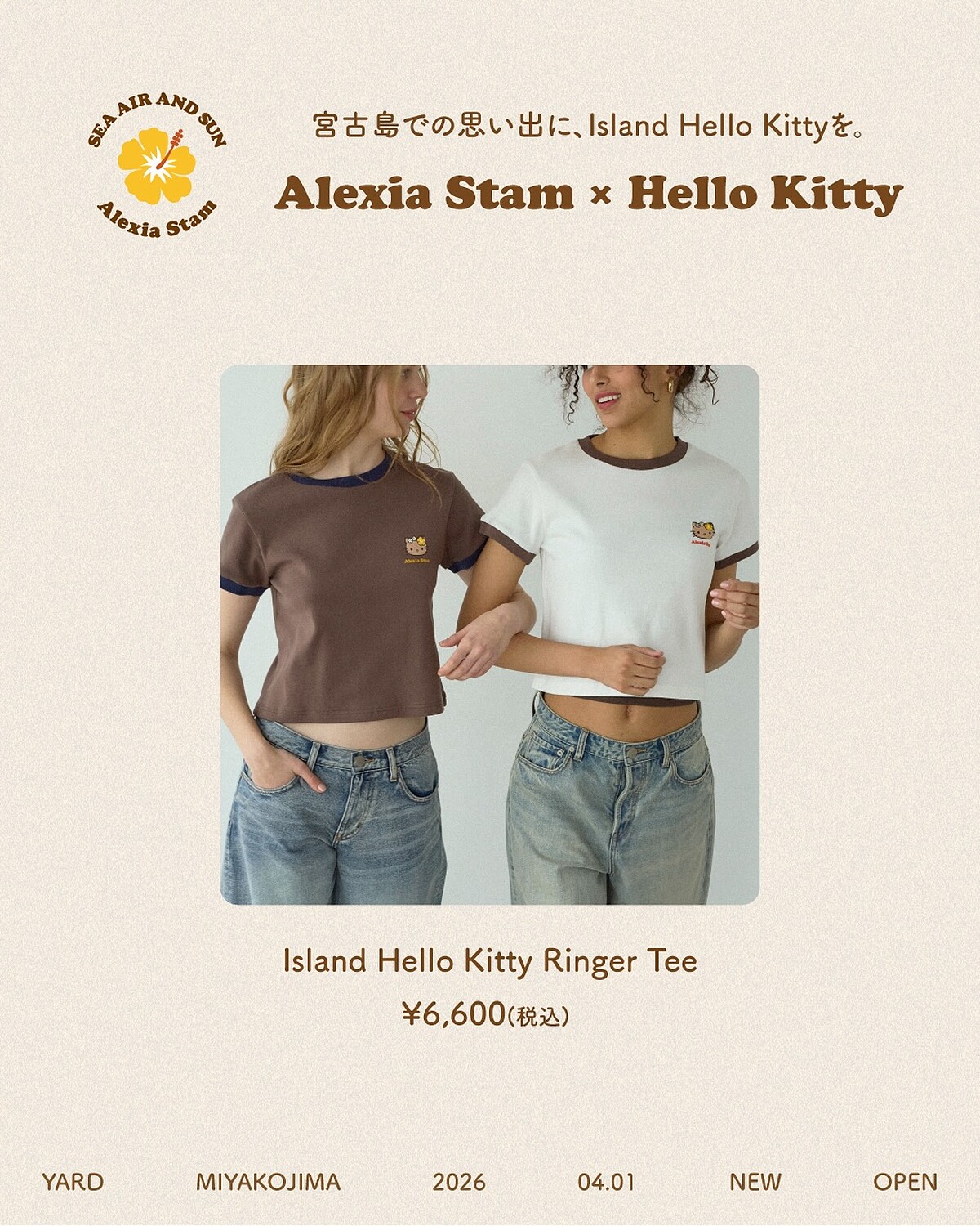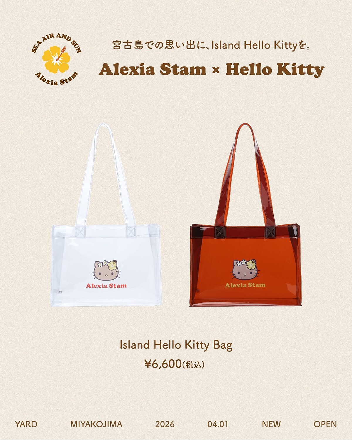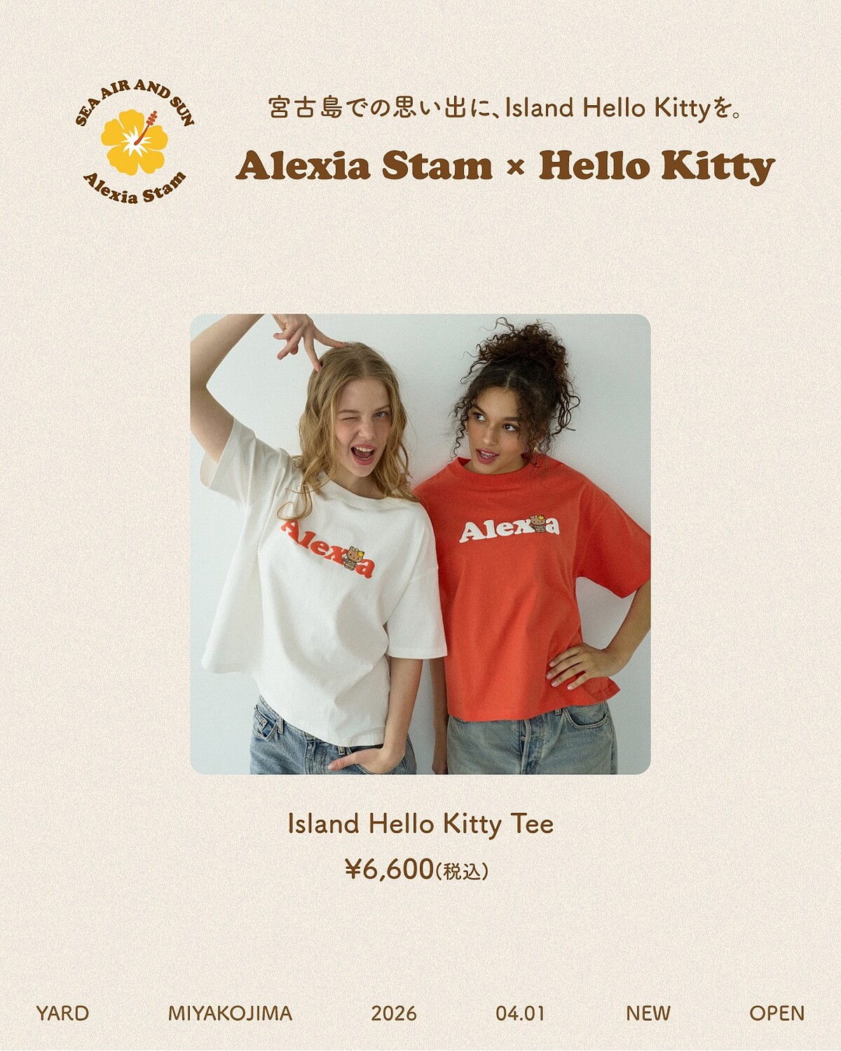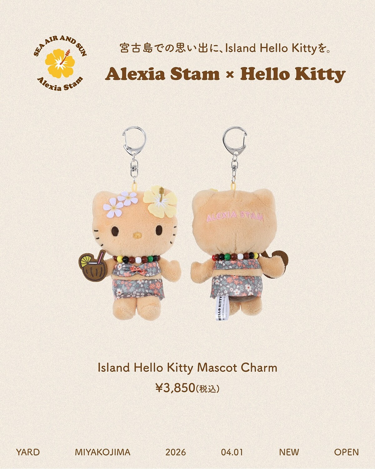 為慶祝新店開幕,品牌特別推出「ALEXIA STAM × Hello Kitty」宮古島限定系列,以「Island Hello Kitty」為主題,將經典凱蒂貓換上海島風情裝扮,打造出僅在宮古島店才能入手的獨家周邊,引發粉絲熱烈期待。