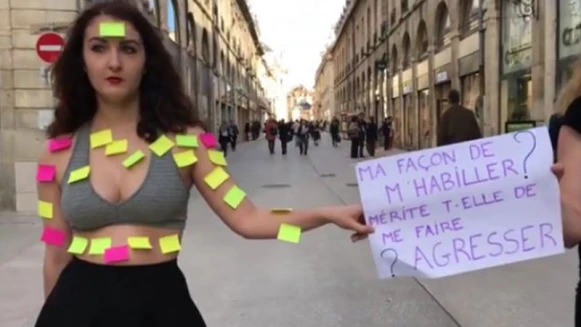 法國性侵案件層出不窮,然而根據法國易普索市調公司的一項調查顯示性侵案件中,如果受害女性的衣著過於暴露挑逗,有27%的性侵犯應負擔的罪責相對較輕。面對這項荒謬離譜的調查結果,九名商學院的女學生在法國東部城市第戎(Dijon)街頭發起一項行動。