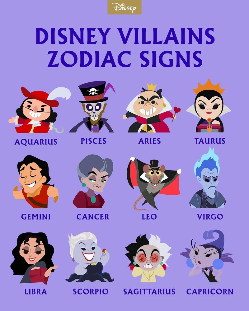 之前迪士尼官方就釋出迪士尼公主們的星座,這次終於輪到反派角色的星座公開,究竟會跟哪個反派人物同星座呢?
