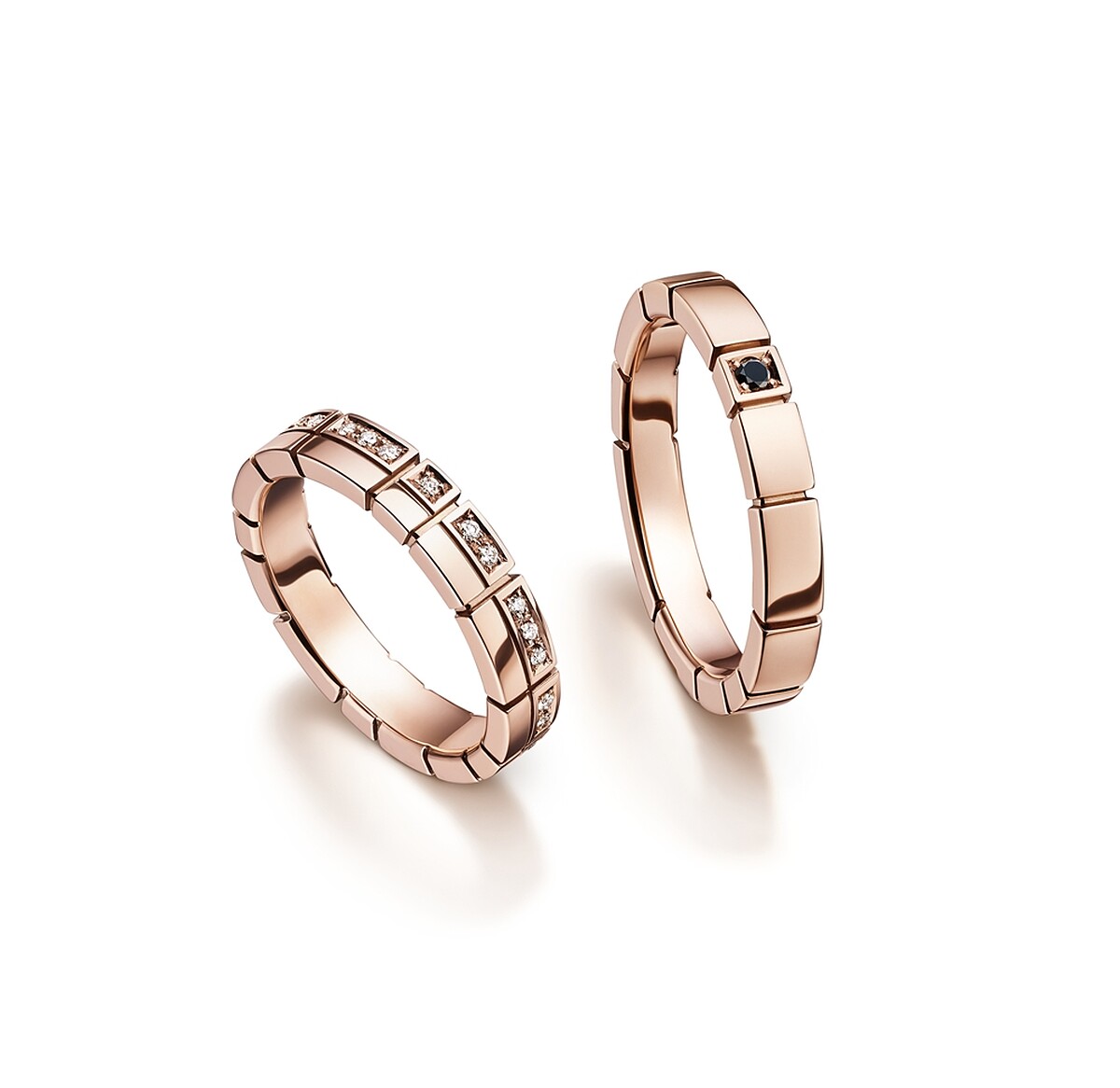 以鋼琴的格狀琴鍵為設計靈感,更有寬版及纖細版兩種版型,除了單鑽款,或是三顆並排鑽石款、黑色鑽石款等等,更特別的是側邊密鑲鑽石的款式。
