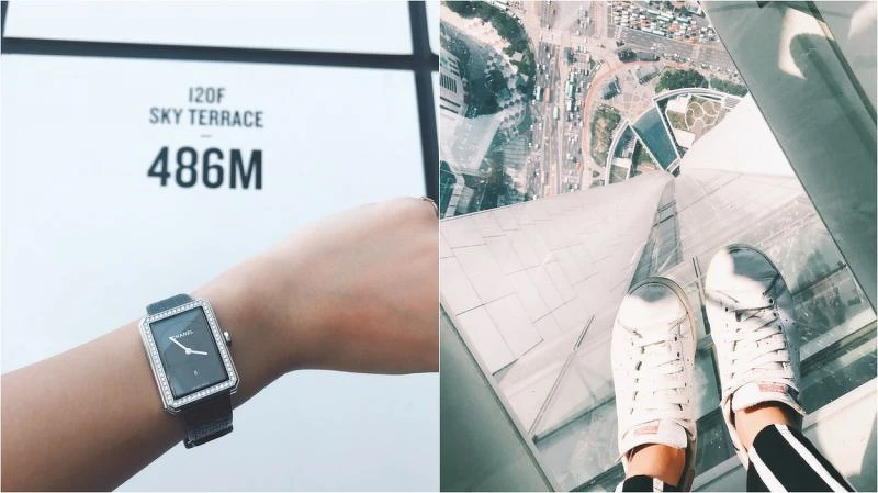 海拔標高486公尺,剛開幕沒多久的韓國新地標、世界第三高觀景台-首爾樂天世界塔,從搭上電梯一口氣登上118樓,整圈透明的觀景台能盡情俯瞰整個首爾市區,來到120樓,週邊提供透明地板拍照景點,光是站上玻璃就讓人軟腳,卻又能感受腳下的世界原來這麼渺小。