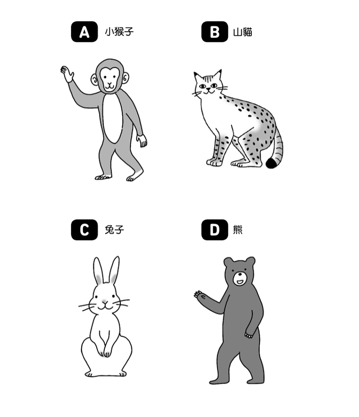 在森林裡迷路時,你遇到了一群動物。若想拜託其中一隻動物當嚮導,你會選擇哪隻動物呢?