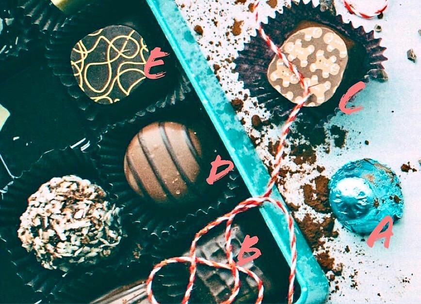 眼前的這一盒巧克力,代表了現在內心最希望被理解的部分,選擇權在你手中,你會挑哪一塊巧克力來吃?