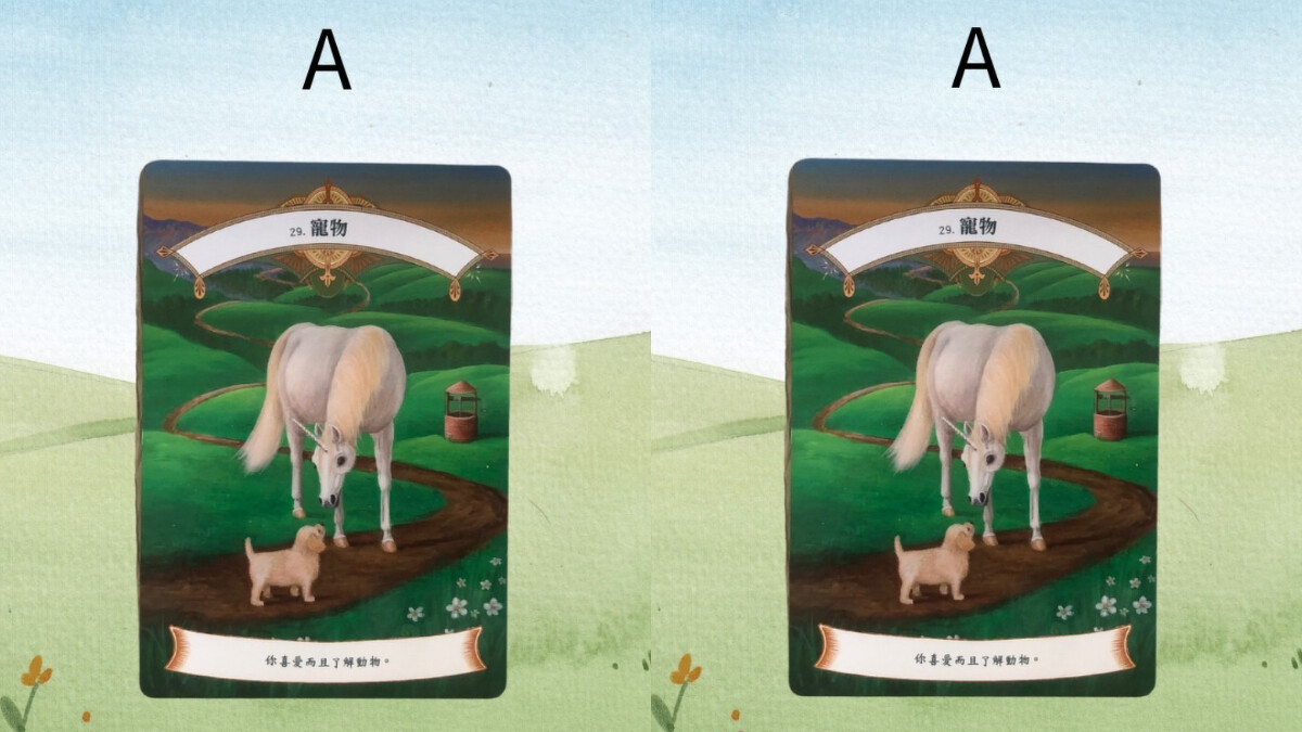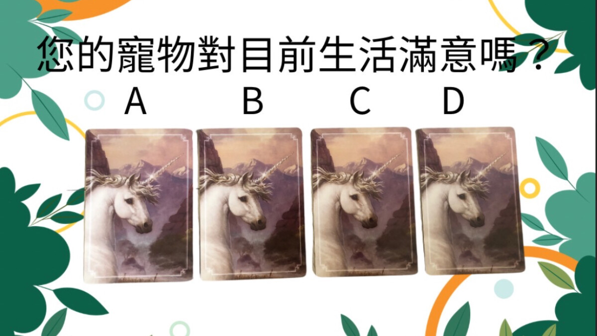 接下來,我們用獨角獸神諭卡作為這次占卜的工具,請在以下四張圖卡憑直覺選一張牌卡,讓自己與寵物對話,更加了解牠的想法,一起來看看寵物對於目前生活有什麼想說的吧!測驗主要題目是:您的寵物滿意現在的生活狀態嗎?
