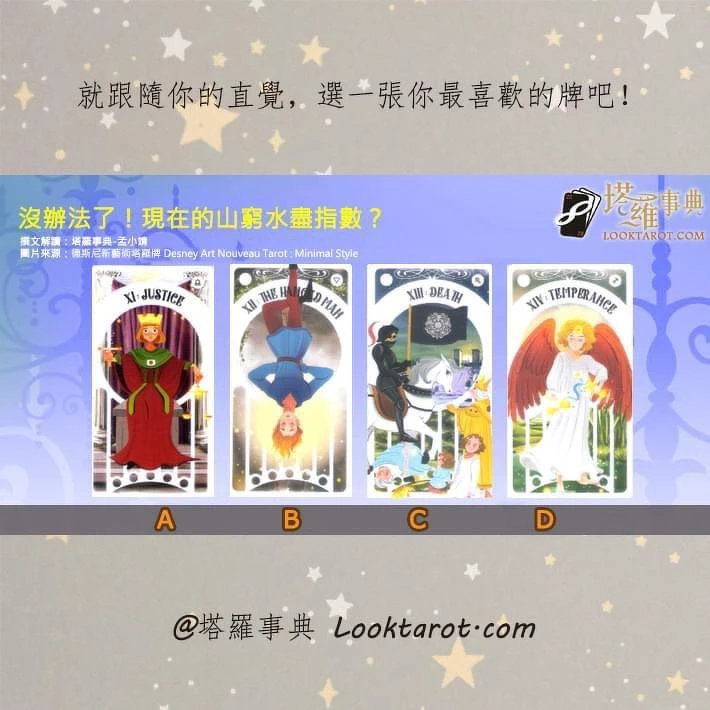 你有腦汁被壓榨個精光,想不出任何企劃案的窘境嗎?還是曾面臨口袋空空、一貧如洗的困境呢?快來玩孟小靖老師的塔羅占卜,看看你最近山窮水盡的指數有多高吧!現在就跟隨你的直覺,請依照你的第一印象,選一張你最喜歡的塔羅牌吧!