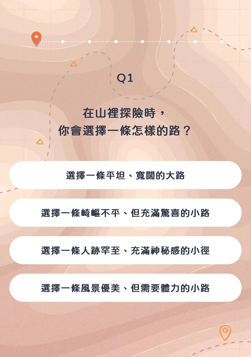 小編揪了親朋好友一起來測驗,發現大致有以下這幾種山,如果你心中已經想好答案了,那麼快點到官網試試看,說不定會有新的山脈出現喔!官網請點此前往