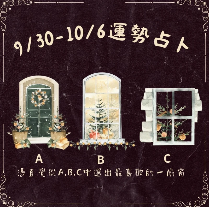 首先,我們先閉上眼睛,花幾秒鐘的時間讓心靜下來。準備好後,就可以睜開眼睛,從A、B、C三個選項中選出最喜歡的一扇窗。
