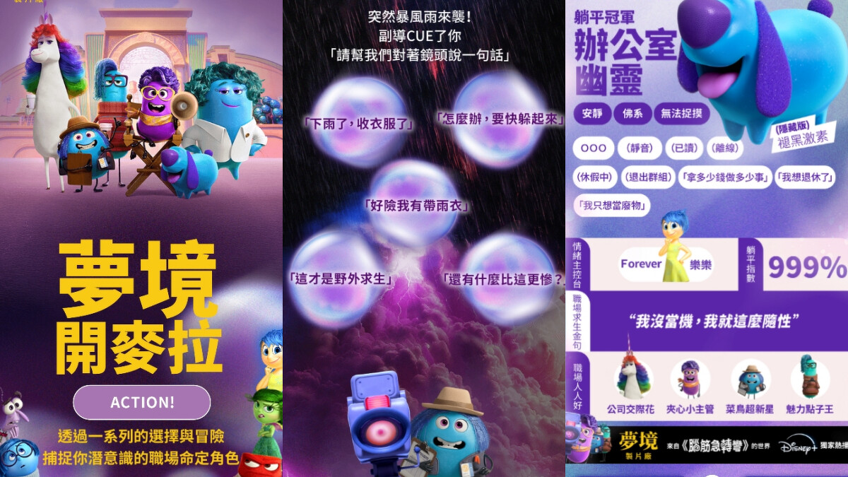 皮克斯電影《腦筋急轉彎》衍生的影集《夢境製片廠》,於2024/12/11在 Disney+開播,故事內容聚焦在萊莉腦中的「夢境製片廠」,揭開夢境製片廠的工作室日常。喜歡作夢的大家,快藉著「夢境開麥拉」心理測驗,找出自己在職場的命定角色。