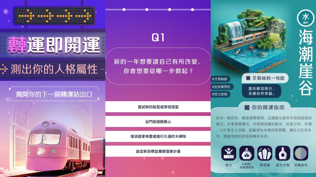 新的一年,想做些不同的改變或是尋找人生方向的話,「轉運即開運」測驗可以為你提供開啟新道路的選項,並給予開運指南提點,讓你獲得人生的下一個轉運站出口,需要的人快請進。