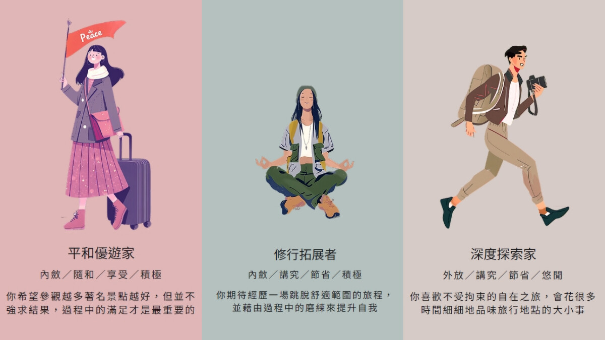 按這裡前往測驗>>找到你的旅行風格