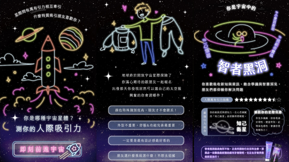 浩瀚銀河中你是哪種宇宙星體呢?與朋友進行一趟奇幻又驚險的太空之旅後,幫你測出人際吸引力,分析什麼特質吸引朋友喜歡你,也會提供一些增進友情的小提醒,測完也要傳給好友一起玩!