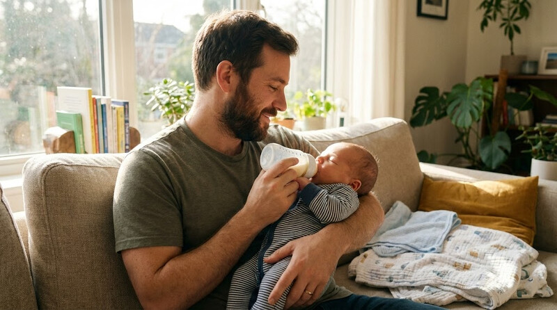 如果是親餵的媽咪,爸爸可以在旁陪伴支持。若是瓶餵,則是爸爸大展身手的好時機!年紀越小的寶寶,因胃部系統尚未成熟,用瓶餵很容易發生溢奶狀況。爸爸細心的餵食與拍嗝,能讓媽媽感受到你主動參與的貼心。