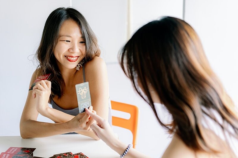 「臉紅牌卡首次釋出的時候,我其實被一個問題困住許久,」Audrey 分享:「這個產品本身,是想打破大家對於『性』的既定想像,那我怎麼樣在牌卡設計裡頭,容納不同的性別認同、不同的性傾向,我的話要怎麼說、我的代名詞要用『她』還是『他』,我在指涉一個對方伴侶時,我選用的名詞是否包含不同可能性,同時,也包含到開放式關係?」