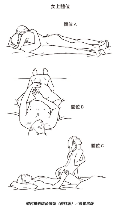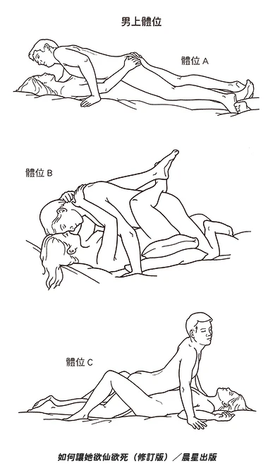 基本上,只有六種體位,其他的都只是這些主旋律的變化:男上、女上、側邊、後進、站立、坐跪。