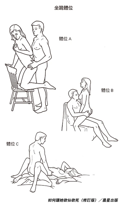 可以由女上體位輕易地轉換成坐跪體位;只要女人把腳往前伸,男人坐起來就行了。