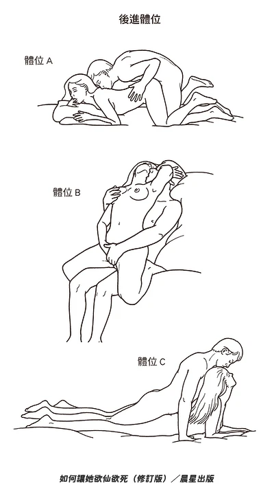 第一步:男人從後面進入女人體內。她把大腿往上靠,靠近胸部或是兩胸之間。